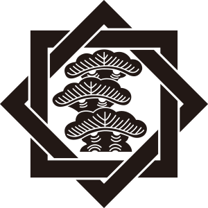 | 松紋とは、マツ科の針葉樹の高木である松の幹、枝、葉、及び松毬を紋章化した家紋。一年中青々とした葉をつける松は長寿の象徴とされ吉祥の瑞木として家紋として用いられた。また、苗字に因んで用いた氏も多い。松紋の形状、種類は極めて多いが、図案としては松を3段にした「三段階松」が多く使用されている。 |