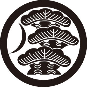 | 松紋とは、マツ科の針葉樹の高木である松の幹、枝、葉、及び松毬を紋章化した家紋。一年中青々とした葉をつける松は長寿の象徴とされ吉祥の瑞木として家紋として用いられた。また、苗字に因んで用いた氏も多い。松紋の形状、種類は極めて多いが、図案としては松を3段にした「三段階松」が多く使用されている。 |