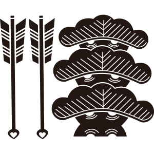 並び矢に三階松紋は、『三つ笠松』を描いて、その左隣に『並び矢』を描く。