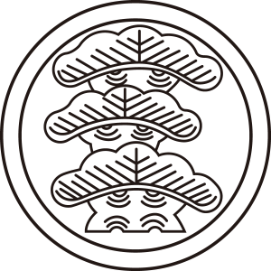 | 松紋とは、マツ科の針葉樹の高木である松の幹、枝、葉、及び松毬を紋章化した家紋。一年中青々とした葉をつける松は長寿の象徴とされ吉祥の瑞木として家紋として用いられた。また、苗字に因んで用いた氏も多い。松紋の形状、種類は極めて多いが、図案としては松を3段にした「三段階松」が多く使用されている。 |