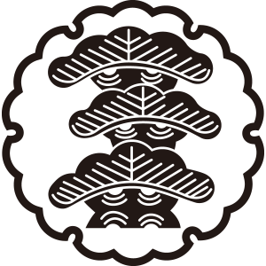 | 松紋とは、マツ科の針葉樹の高木である松の幹、枝、葉、及び松毬を紋章化した家紋。一年中青々とした葉をつける松は長寿の象徴とされ吉祥の瑞木として家紋として用いられた。また、苗字に因んで用いた氏も多い。松紋の形状、種類は極めて多いが、図案としては松を3段にした「三段階松」が多く使用されている。 |