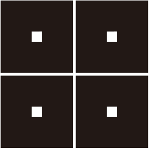 平四つ目紋は、4つの『平一つ目』を集めて正方形の形に描く。讃岐丸亀藩京極氏の定紋。宇多源氏佐々木氏族で用いられる代表的な家紋の一つ。