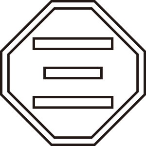 陰折敷に三文字紋(2)は、全体的に線を細くした『折敷に三文字』を輪郭線のみで描く。