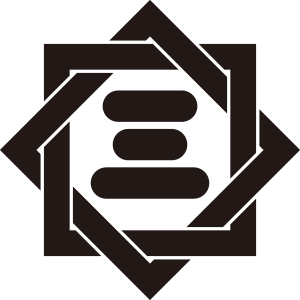 組み合い傍折敷に三文字紋は、2つの『傍折敷』を組み合わせて、その中心に「三」の文字を描く。