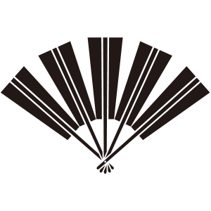 | 扇紋とは、涼を取るための道具である扇を紋章化した家紋。扇が閉じた状態から広がるということで「末広」の縁起が良いものとして、祝賀や結婚式などに用いられるなど祝の意を表した。このようなことから吉祥の意義で家紋として用いられ、『檜扇』のようにその優美で美しいことから用いられた家紋もある。扇紋は人気の図案でバリエーションも豊富。 |