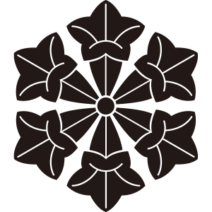 六つ竜胆車紋は、6つの竜胆の花を尻合わせに寄せて、車状に描く。