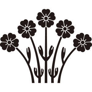 | 桜紋とは、日本の花の代名詞であり、国の花でもある桜の花をモチーフとした家紋。桜は、古くから田植えの時期を知らせる花として、「木花咲耶姫(このはなさくやびめ)」の化身とされた。家紋としては、散る、儚いイメージから当初は武家の家紋としては敬遠されたが、その優美なデザインから文様として愛用され、江戸時代には細川氏や松平氏、仙石氏といった大名家を含め、幕臣でも20数家が用いている。他に、木花咲耶姫を祀る神社が神紋として用いており、神社関連や名字に「桜」の文字を含む家の使用は多い。 |