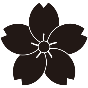 | 桜紋とは、日本の花の代名詞であり、国の花でもある桜の花をモチーフとした家紋。桜は、古くから田植えの時期を知らせる花として、「木花咲耶姫(このはなさくやびめ)」の化身とされた。家紋としては、散る、儚いイメージから当初は武家の家紋としては敬遠されたが、その優美なデザインから文様として愛用され、江戸時代には細川氏や松平氏、仙石氏といった大名家を含め、幕臣でも20数家が用いている。他に、木花咲耶姫を祀る神社が神紋として用いており、神社関連や名字に「桜」の文字を含む家の使用は多い。 |