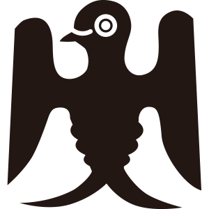変り雀紋は、1羽の雀を立たせて正面から極端にデフォルメした形に描く。