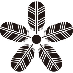 五つ鷹の羽車紋は、5枚の鷹の羽を尻合わせに車状に描く。