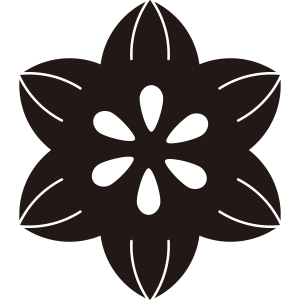 | 鉄線紋は、植物の鉄線の花をデフォルメして文様化したもの。鉄線は中国原産でクレマチスの一種、我が国には江戸期の寛文年間に渡来した。鉄のように硬い蔓を伸ばしながら成長し、初夏に6弁または8弁の花をつける。お茶会などで飾られるなど愛されたことから家紋に用いられた。ただし、家紋としては比較的新しい。 |