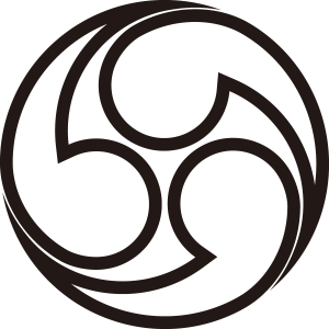 | 巴紋とは、縄文遺跡にもみられる非常に古い文様で、雷神が背負う太鼓にも描かれるように雷鳴を表している。※渦や蛇、雲、胎児、鞆絵(ともえ)に由来する説あり。歴史上最初に登場する家紋で、公家、武家の家紋の他にも、神社の神紋、お寺の寺紋など非常に多く使用されており、その種類も極めて多い。尾(細い部分)の向きにより「左三つ巴」「右二つ巴」など呼ばれるが、頭(丸い部分)の向きにより「三頭右巴」や「二頭左巴」とも呼ばれる。つまり「左三つ巴」と「三頭右巴」は同じものであり、このため向きに関しては勘違いや間違いも非常に多い家紋である。単に「一つ巴」や「三つ巴」と書く場合は尾が左向きを指すことが多い。古くからの文様であり、紋自体に特別な意味をもつため、さまざまな意義により家紋となったと思われる。 |