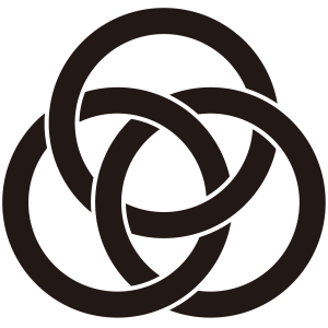 三つ輪違い紋は、3つの輪を互いに絡みわせて描く。旗本平岡氏、旗本金田氏の家紋の一つ。静岡県藤枝市神神社神紋、山口県赤崎神社神紋。